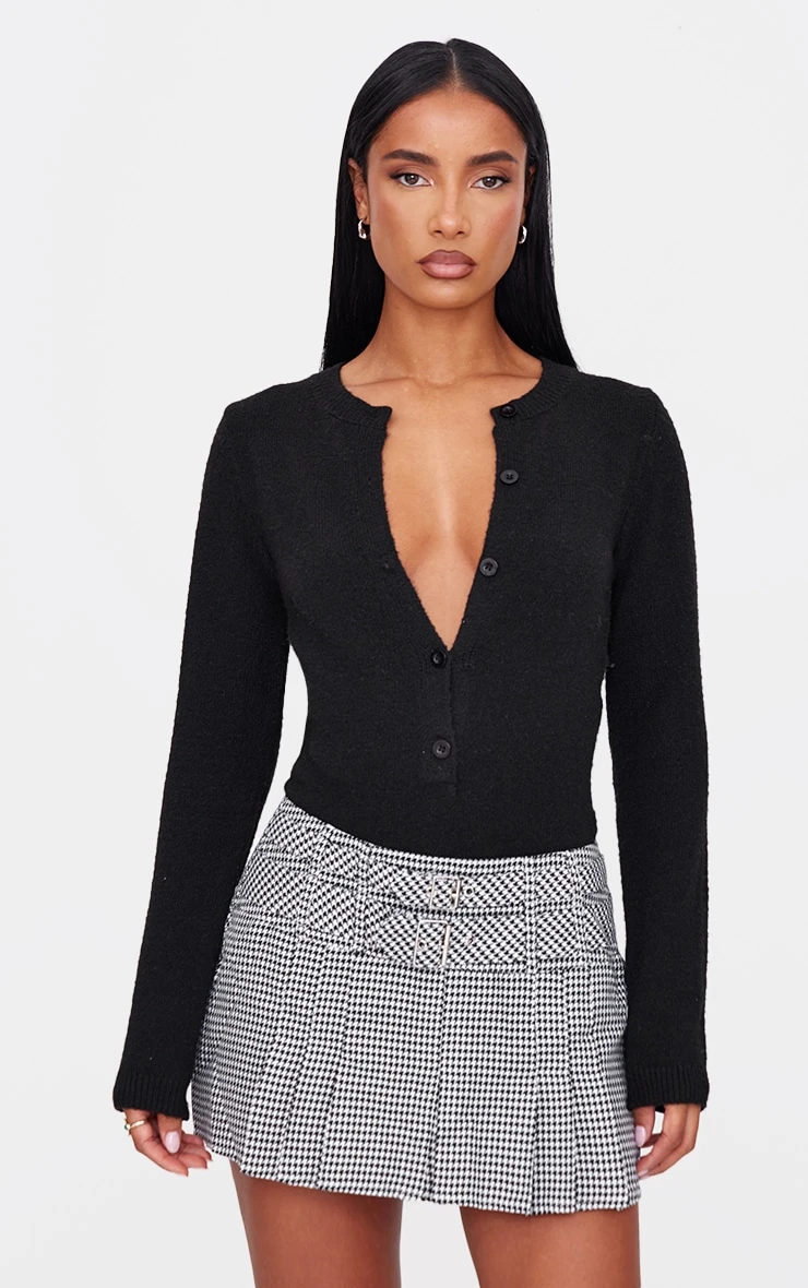 Gingham gets a modern update. This black mini skirt features a sharp pleated design, punctuated by double buckle detailing for an edgy feel. The monochrome palette makes it endlessly versatile. Style it with a fine knit top and chunky boots for a contemporary take on preppy, or elevate the look with a crisp white shirt and delicate jewelry. Explore our range of skirts for more wardrobe investments.