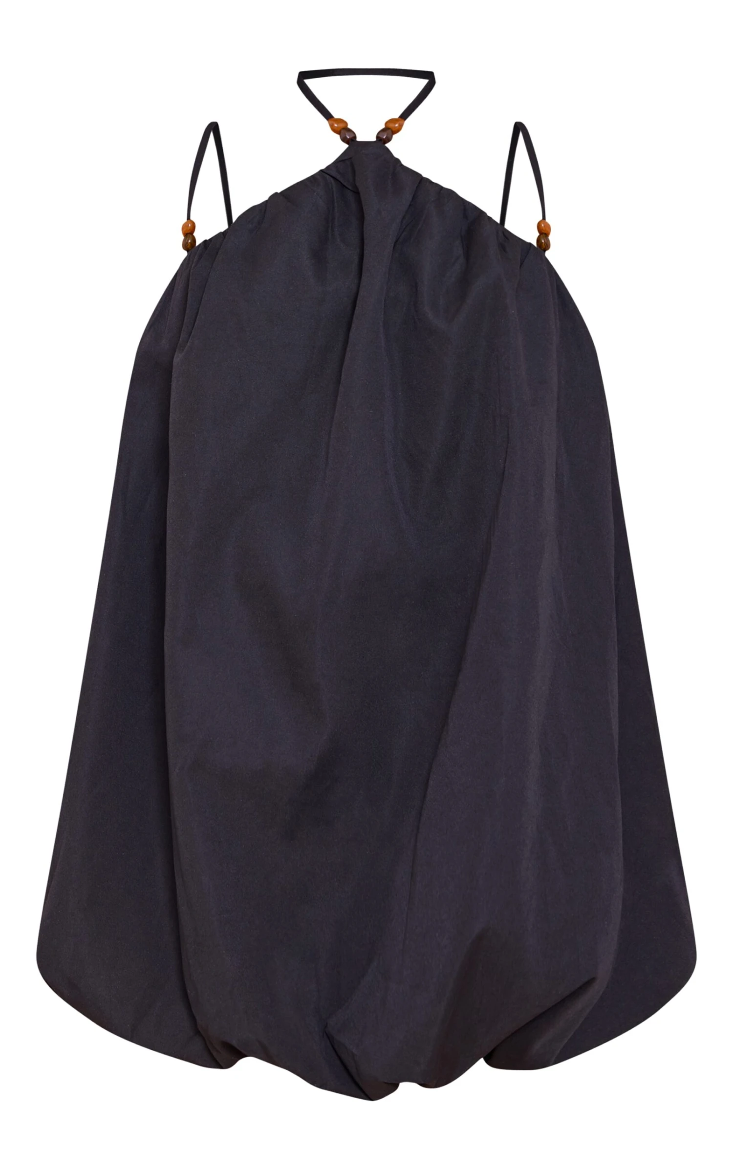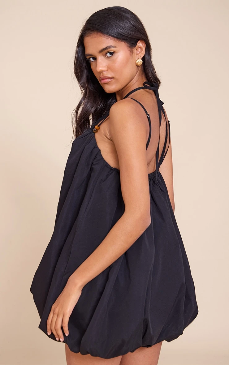 Make a statement in this black halterneck bead detail puffball dress. Crafted from black material, this dress has a fashion-forward puffball design with bead detailing and intricate straps. Opt for elegance by teaming it with kitten heels, a chunky bangle and your go-to earrings.