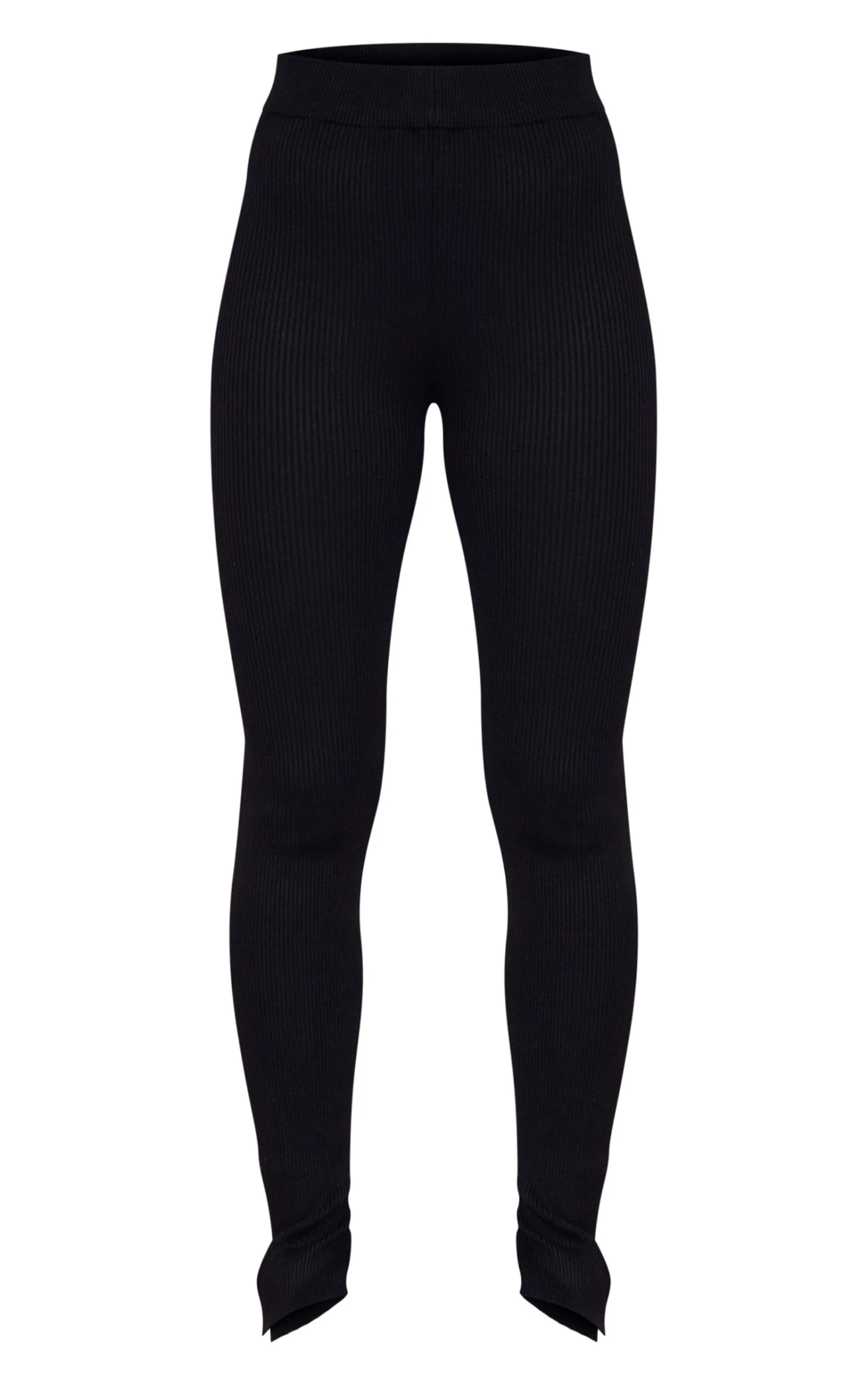 Elevate your everyday edit with these black knitted pants. The flared leg silhouette offers a refined nod to retro styling, while the subtle split hem introduces a contemporary edge. Crafted from a comfortable knit, these pants are designed for effortless wear. For an elevated ensemble, pair them with a tailored shirt or fine knit top.
