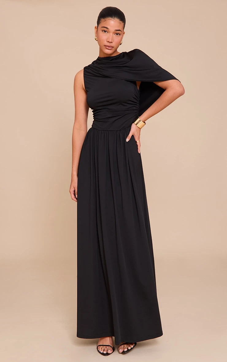 Introducing your new occasion-wear staple with this black layered ruched maxi dress. Tailored to perfection, this dress is crafted from a black fabric with flattering ruching and a chic maxi length fit. For the ultimate evening look, style this piece with understated heels, a gold chunky bangle and your go-to earrings.