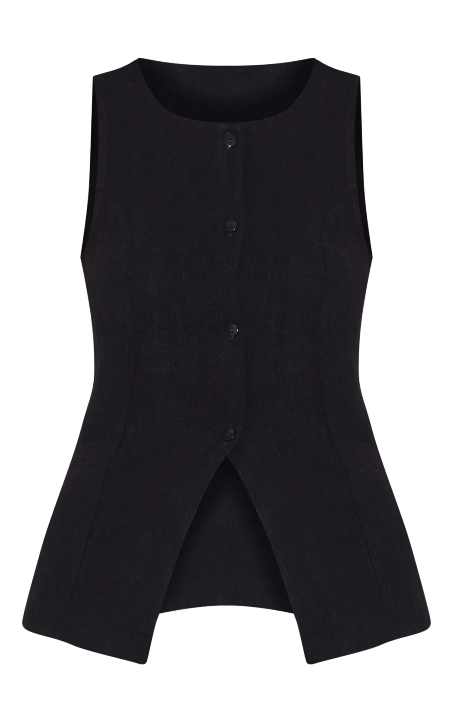 The longline vest: a masterclass in considered layering. Crafted in a structured black bengaline, this piece offers a refined silhouette that instantly elevates any ensemble. The elongated cut lends itself to a multitude of styling options; consider it a modern alternative to the blazer. For a seamless transition from desk to dinner, pair this vest with tailored pants from our bottoms collection and a crisp, oversized shirt. The result? An assured, contemporary statement.