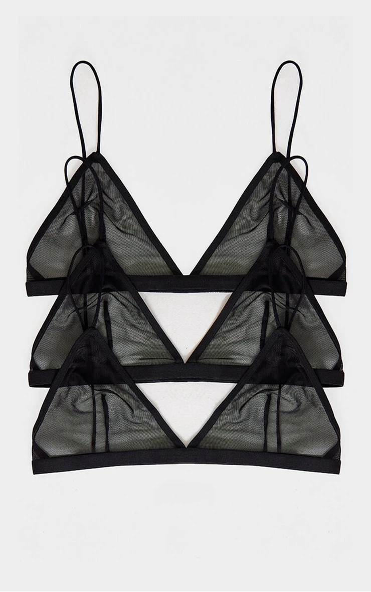 Consider this your foundational lingerie edit: a trio of black mesh triangle bras. The delicate mesh offers breathability and a subtle sheerness, ideal for layering under sheer tops or low-cut silhouettes. The minimalist triangle design provides light support and a natural shape. Wear one beneath a tailored shirt dress, left slightly unvalueed, and complete the look with a structured tote from our accessories collection for a considered, confident edge.
