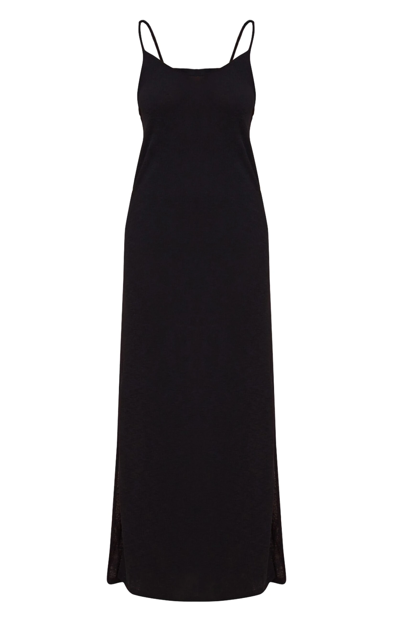Add texture to your wardrobe with this black onion skin plunge sleeveless maxi dress. The plunging neckline and semi-sheer fabric make it equal parts daring and elegant. This style hugs in all the right places while keeping things lightweight. Team with gold jewelry and sandals for evening sophistication.