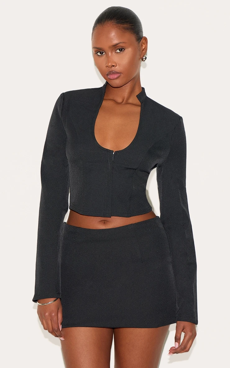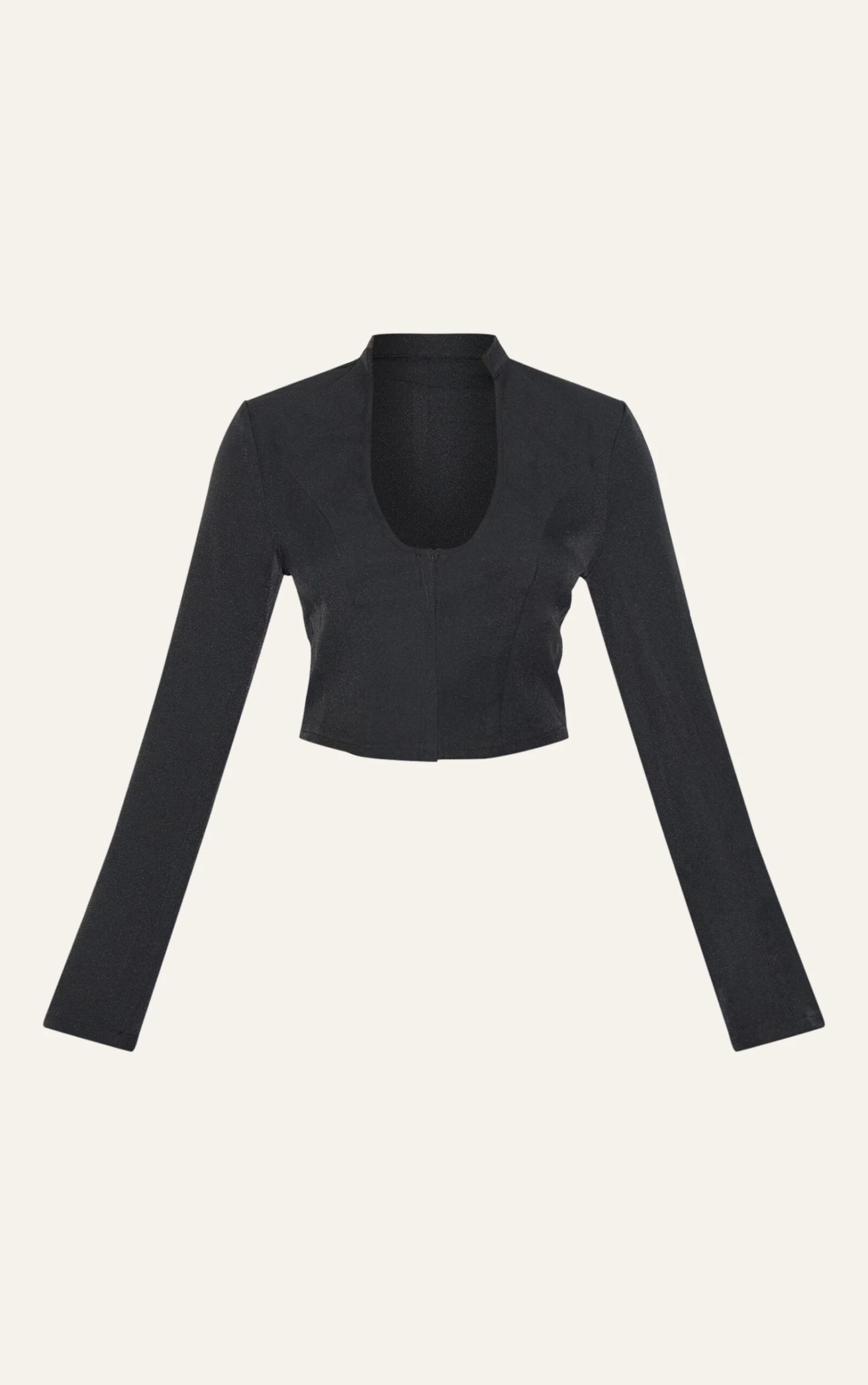 The black plunge scoop neck shirt, rendered in a versatile black, offers an elevated approach to everyday dressing. Its defining feature is the considered scoop neckline, designed to frame the décolletage with understated confidence. The finely crafted silhouette lends itself to a multitude of styling options; consider it worn with tailored pants from our bottoms collection for a study in restrained chic.
