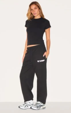 Elevate your downtime edit with these black studio print cuffed sweatpants. Crafted from a substantial fabric, these sweatpants feature a subtly contrasting ‘PLT Studio’ print that lends a refined edge to off-duty dressing. The cuffed hems maintain a streamlined silhouette. Style yours with sharply tailored pants from our collection for an effortlessly elevated take on modern loungewear.