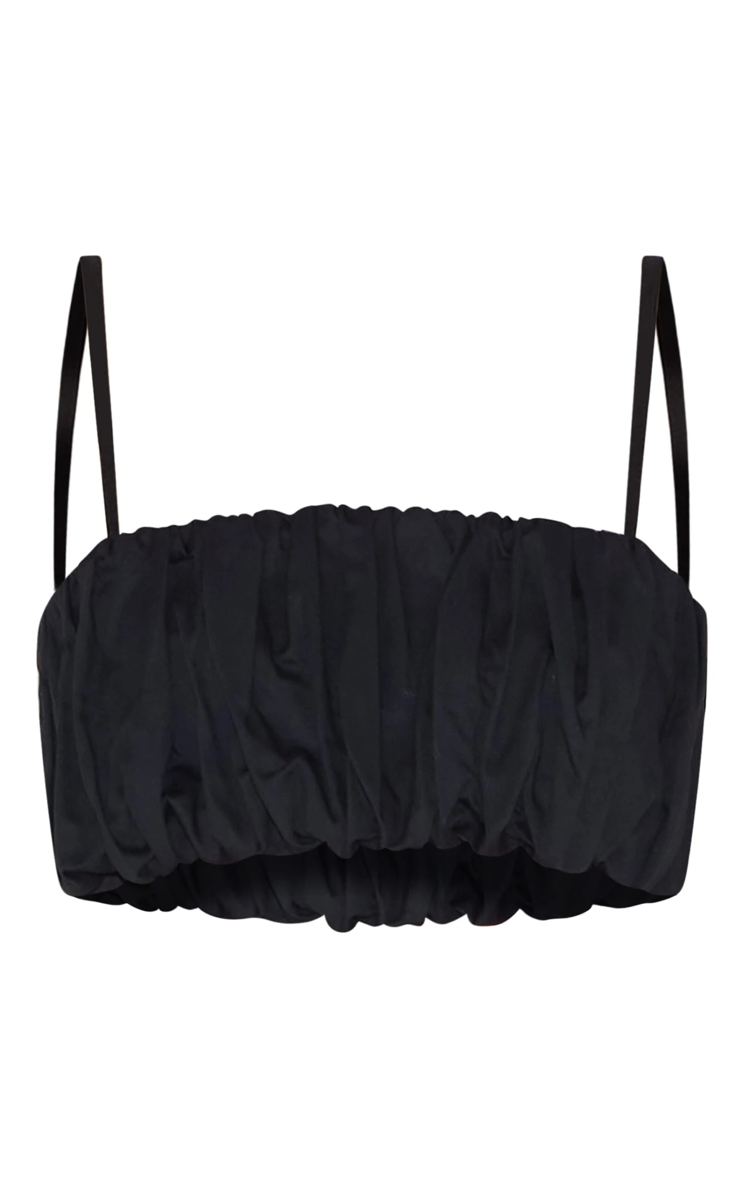 Say hello to the black puff ball extreme crop top. Featuring thin spaghetti straps, this top is made from a black material with a puff ball finish. Whether your look is for a relaxed sunny day or an evening with friends, pair this piece with a dropped waist maxi skirt, statement gold bangles and your favorite earrings.