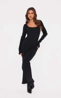 Refine your off-duty edit with this black rib knit maxi dress. The piqué hem lends a subtle textural contrast to the streamlined silhouette, crafted from a comfortable rib knit that moves with you. The beauty of this piece lies in its versatility; consider it a blank canvas for considered accessorising. Layer with a fine gold chain and a structured leather tote from our accessories collection for a seamless transition from weekday meetings to weekend brunch.