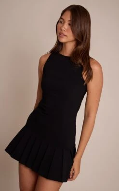 Exude feminine charm in the black stretch woven frill hem shift dress. Designed in a black stretch woven fabric, it features a classic shift silhouette elevated by a frill hem for subtle drama. Perfect for dinner dates or parties, this dress is an instant favorite. Pair with mid height heels and a shoulder bag for chic elegance.
