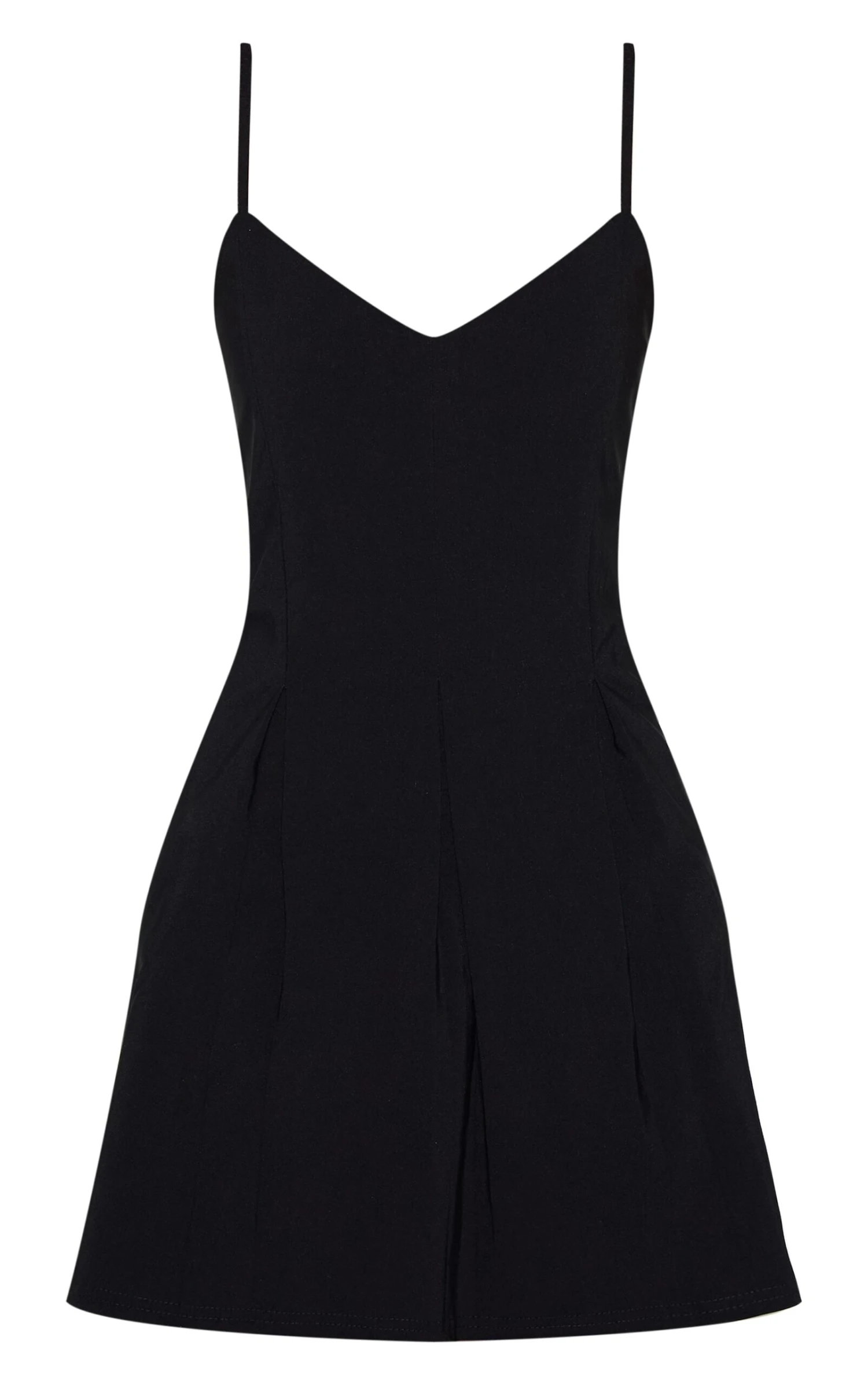 Designed with a minimalist mindset, made to stand out, this black stretchy woven strappy pleated shift dress has thin spaghetti straps and a flattering mini length fit. For an elevated finish, simply style with strappy stiletto heels and minimalistic jewelry.
