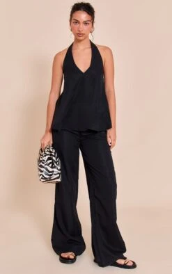 Refine your tailored collection with these black tailored wide leg drawstring pants. Made from a black tailored material, they feature a wide leg cut and adjustable drawstring waist for comfort and style. Their versatile design is perfect for both workwear and elevated casual looks. Pair with a Tank top and sandals for a timeless finish.