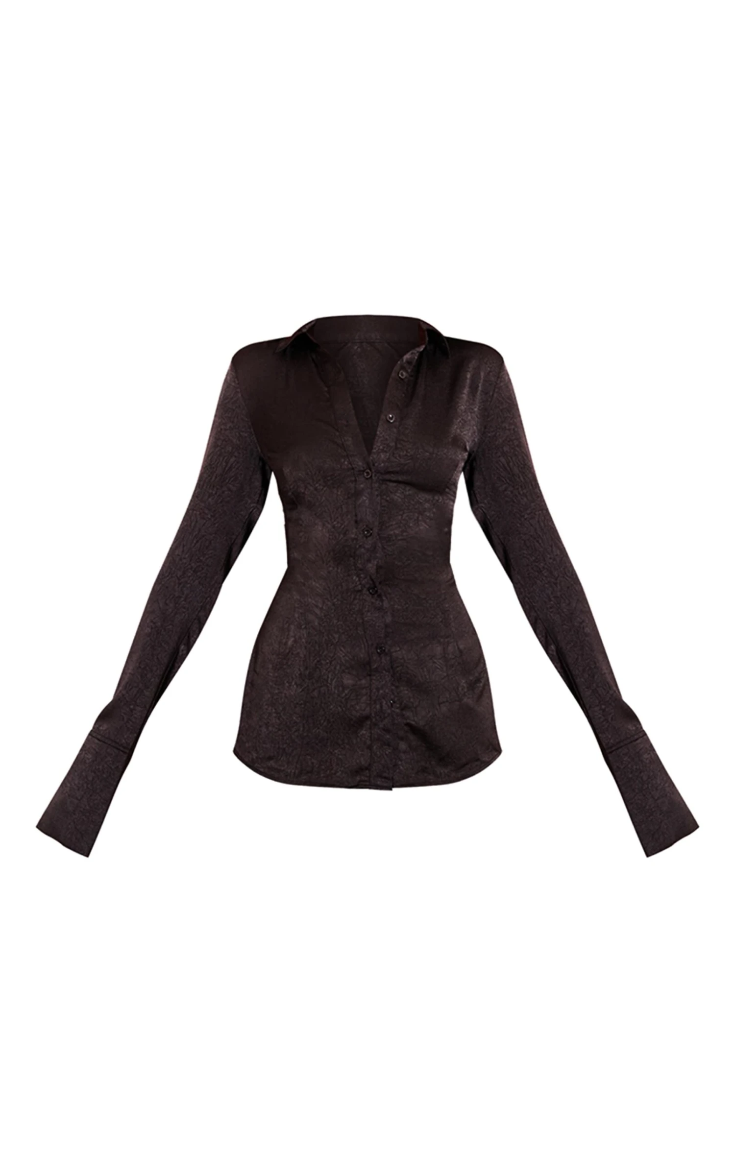 The black textured fitted shirt brings a tactile element to a classic staple. With its structured tailoring and subtly textured fabric, it sculpts the frame while adding interest to minimalist outfits. A versatile piece that elevates even simple looks. Pair with a leather mini skirt and boots for a modern evening outfit, or wear with tailored pants for a sleek office look.