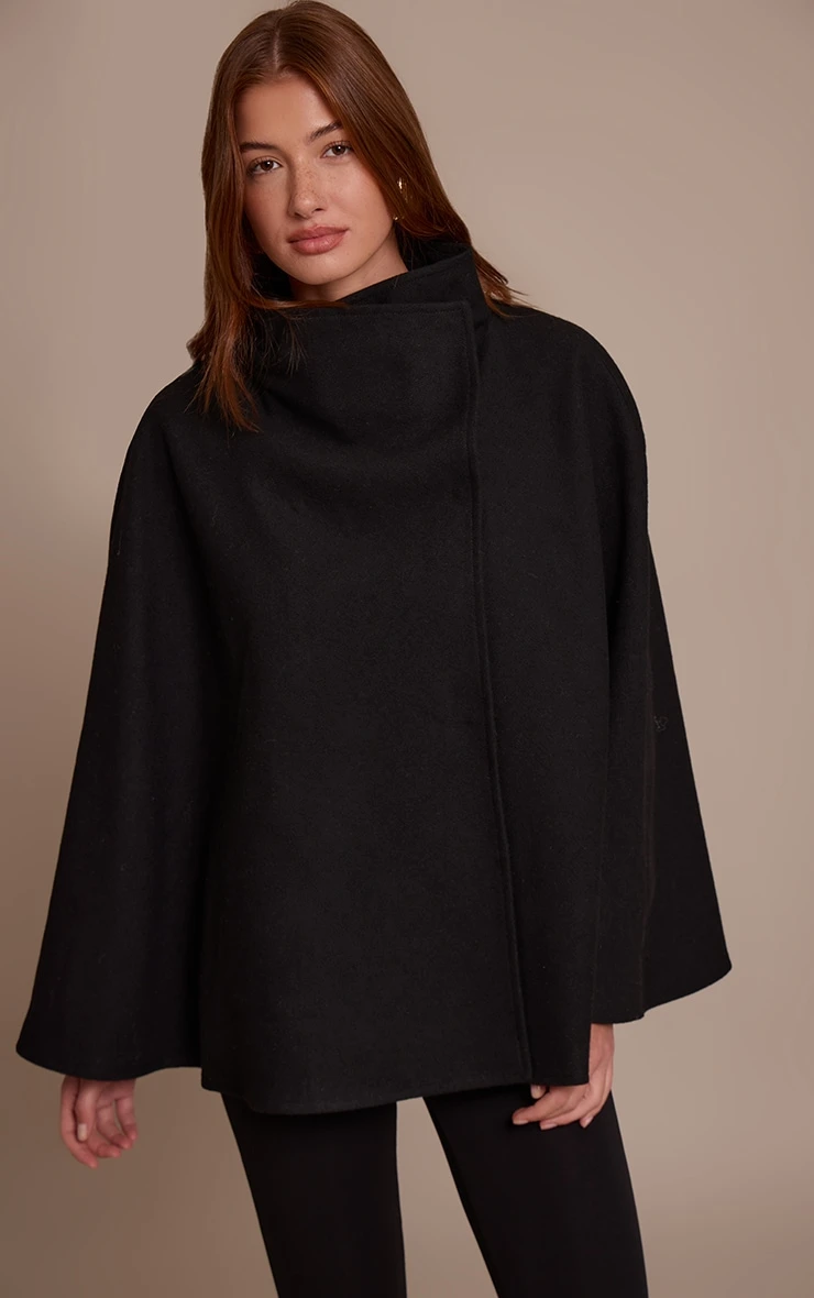 Keep it classic with the black wool look funnel neck wrap coat. Made from cosy wool-look fabric with a wrap design and high funnel neckline, it’s both practical and chic. Pair with tailored pants or a knit dress for cold-weather elegance.