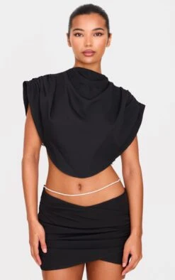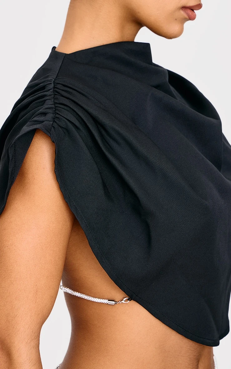 Introducing this black woven diamante draped front high neck top to your new season wardrobe. Brought to you in a black woven material with a draped design, a diamante detail and a high neck fit, what more could you want? Team this top with a mini skirt and your fave heels for an effortlessly chic finish.
