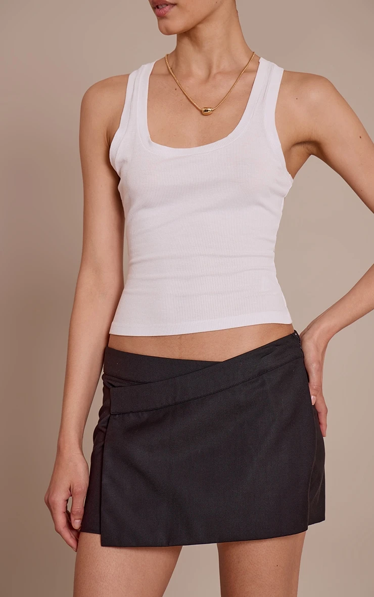 Add a sleek touch with the black wrap over mini skirt. The wrap design flatters the waist and adds movement to your look. Pair with a fitted bodysuit and strappy heels for an evening outfit, or layer over tights with boots and a chunky knit for a stylish day ensemble.