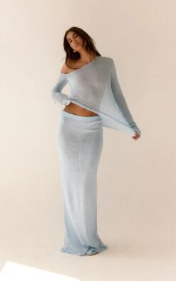 Step into summer elegance with this blue filigree maxi skirt. Designed in a delicate lace-inspired print with a flattering high waist, it moves beautifully with every step. The soft, breathable fabric offers all-day comfort while elevating your seasonal wardrobe. Style it with the matching top and woven sandals for a beachside brunch look.