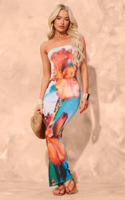 Set major trends this season with this blue onion skin bandeau orchid print maxi dress. Brought to you in a blue onion skin material with a bandeau fit and an orchid print, what more could you want ? Its maxi length will have you feeling effortlessly chic all season long. Team with your fave accessories and a pair of heels for a fool proof finish we are obsessing over.