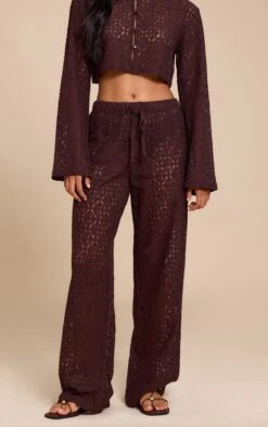 Redefine your fashion repertoire with these brown lace straight leg pants. Tailored from a chic lace material, these pants have a comfortable drawstring waist and a classic straight leg fit. Take your look to the next level by styling these with the matching crop top, slip on sandals and minimalistic jewelry.