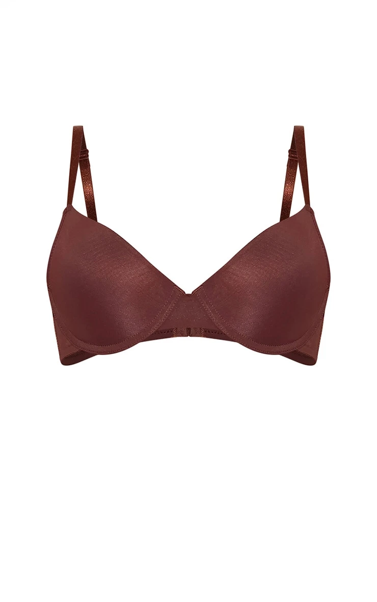 The foundation of every great look begins with considered underpinnings. This brown underwired t-shirt bra provides essential support and a smooth silhouette beneath any outfit. The neutral brown hue renders it a versatile addition to your lingerie drawer, while the underwired design ensures all-day comfort and subtle shaping. Wear it with a pair of tailored pants from our bottoms collection for a seamless, confident feel.