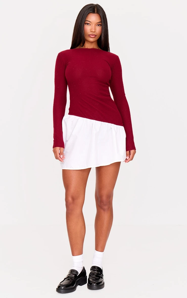 Consider this your shortcut to elevated weekend dressing. This burgundy brushed rib shift dress offers a masterclass in minimalist chic with an edge. The brushed rib texture provides a tactile depth, while the asymmetric hem introduces a dynamic silhouette. Consider offsetting the rich color with a sculptural gold cuff from our jewelry collection for a considered finish.
