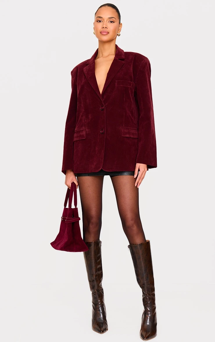 Get ready to earn some serious style points with this burgundy faux suede longline blazer. Made from a burgundy hue faux suede material with a value through fastening and a longline fit, how can you resist? Style this faux suede blazer with a mini skirt, sheer tights and heels for a chic look we just can’t get enough of.