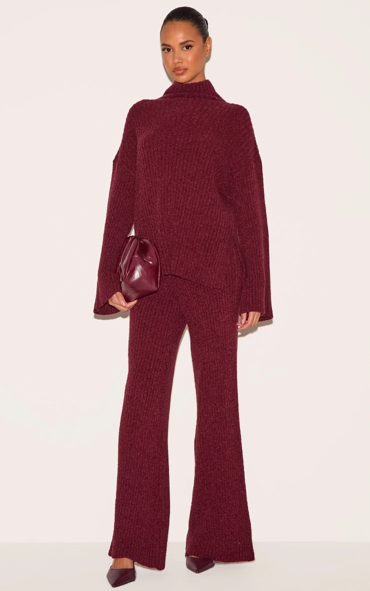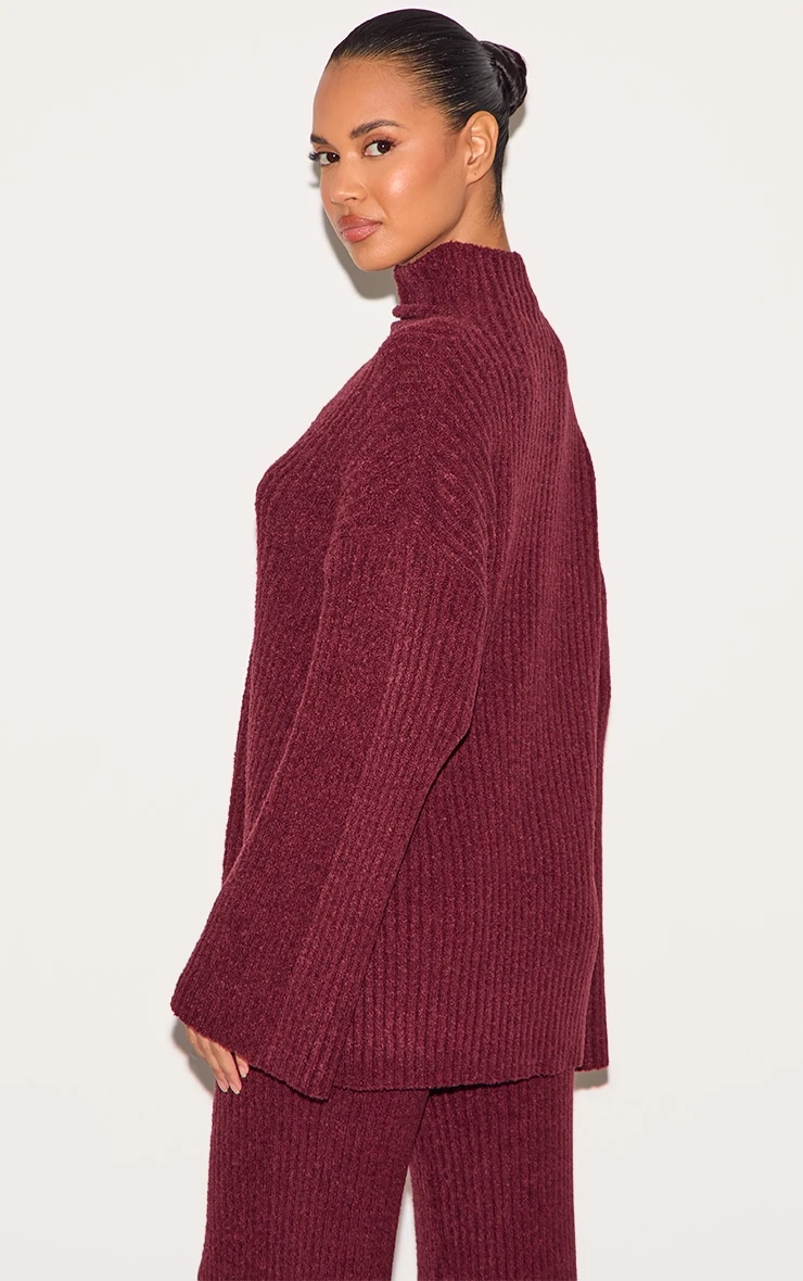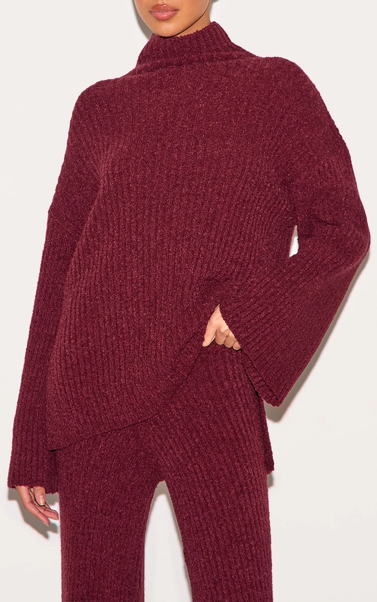 Consider this your new-season style cue: a burgundy rib boucle knit sweater, reimagined for effortless sophistication. The oversized fit offers a modern silhouette, rendered in a tactile boucle knit that begs to be touched. Note the subtle ribbed detailing, adding textural interest to the rich burgundy hue. Style yours with tailored pants from our bottoms collection for a directional take on off-duty dressing.