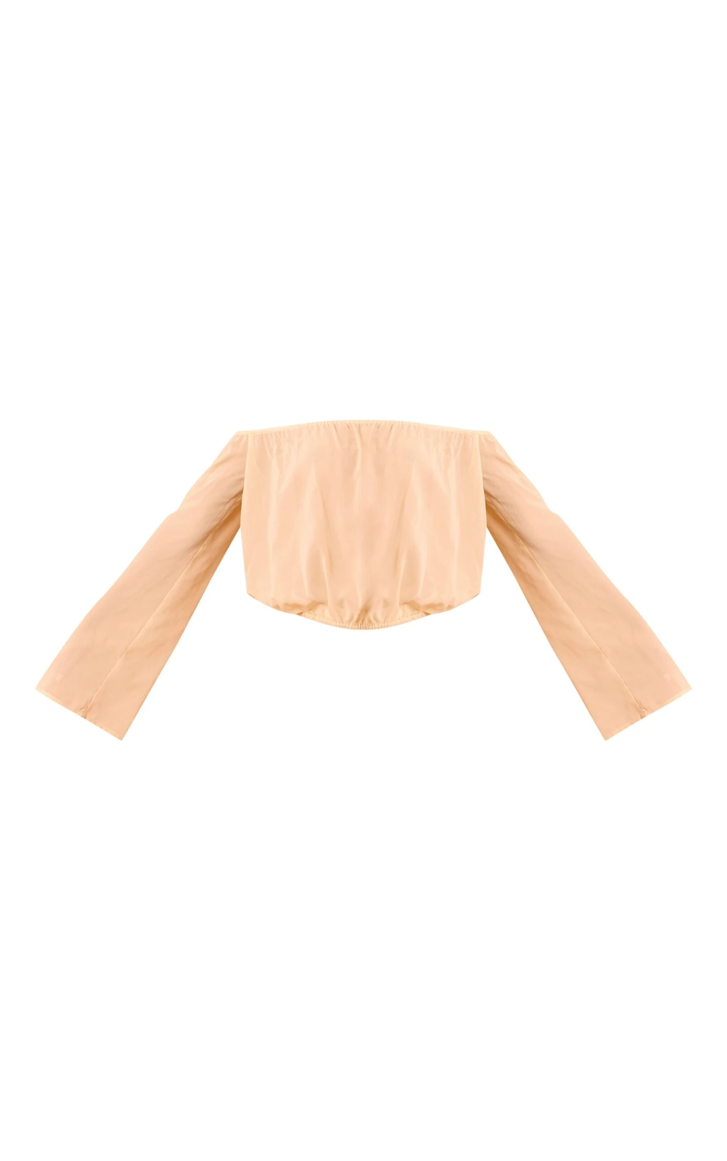 Elevate your outfit instantly in this butter cream chiffon ruched bardot blouse. Brought to you in a butter cream chiffon material with a ruched design and a flattering bardot fit. Pair this blouse with a maxi skirt and heels to make heads turn this season and beyond.