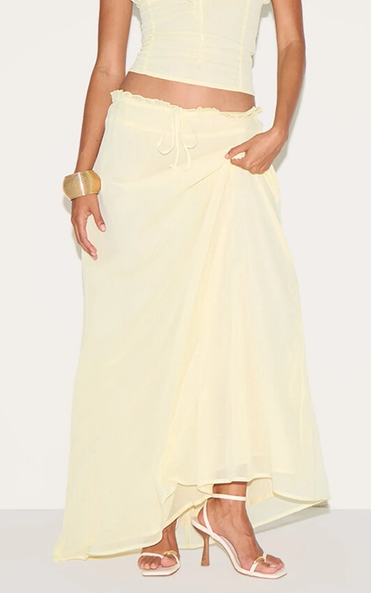Add some statement hues to your look with this butter yellow chiffon floaty maxi skirt. Crafted from a butter yellow chiffon material, it features a floaty design and a flattering maxi length. Pair it with the matching top and strappy heels for a must-have finish.