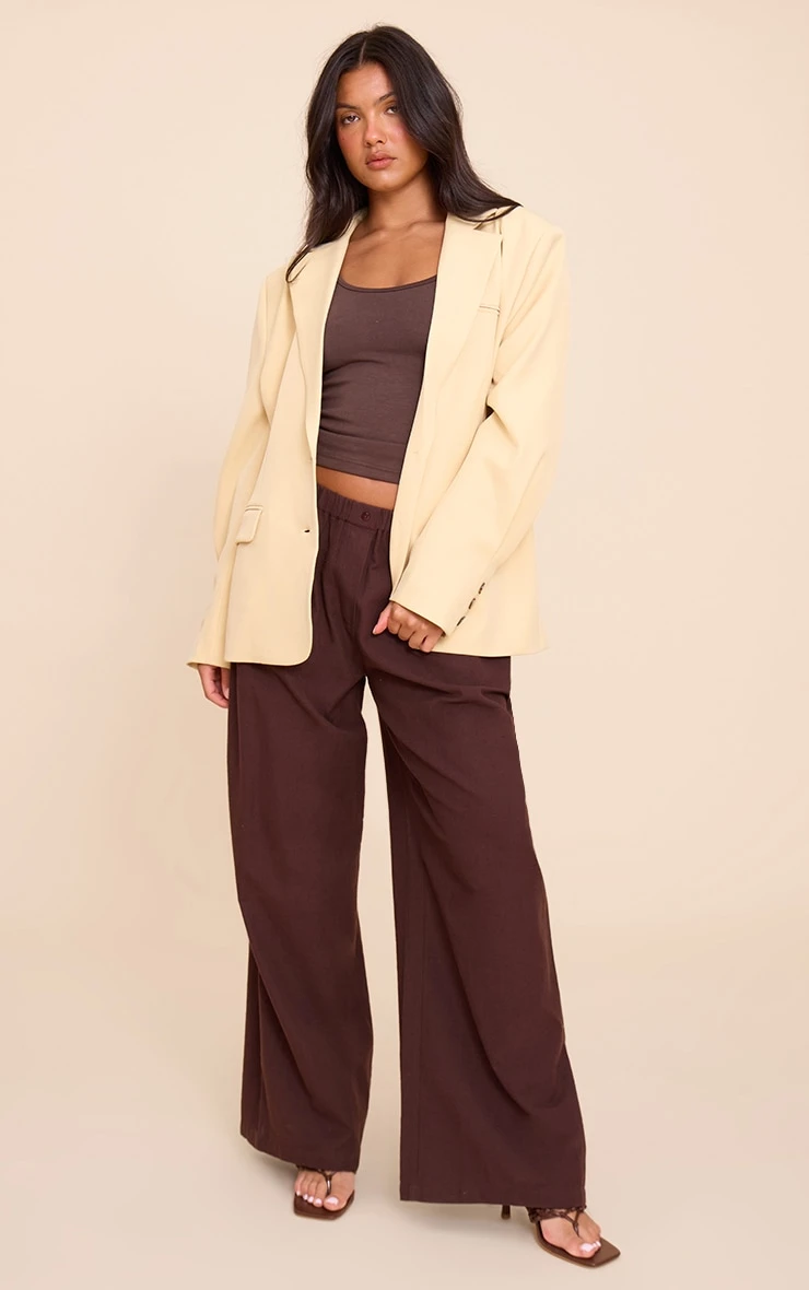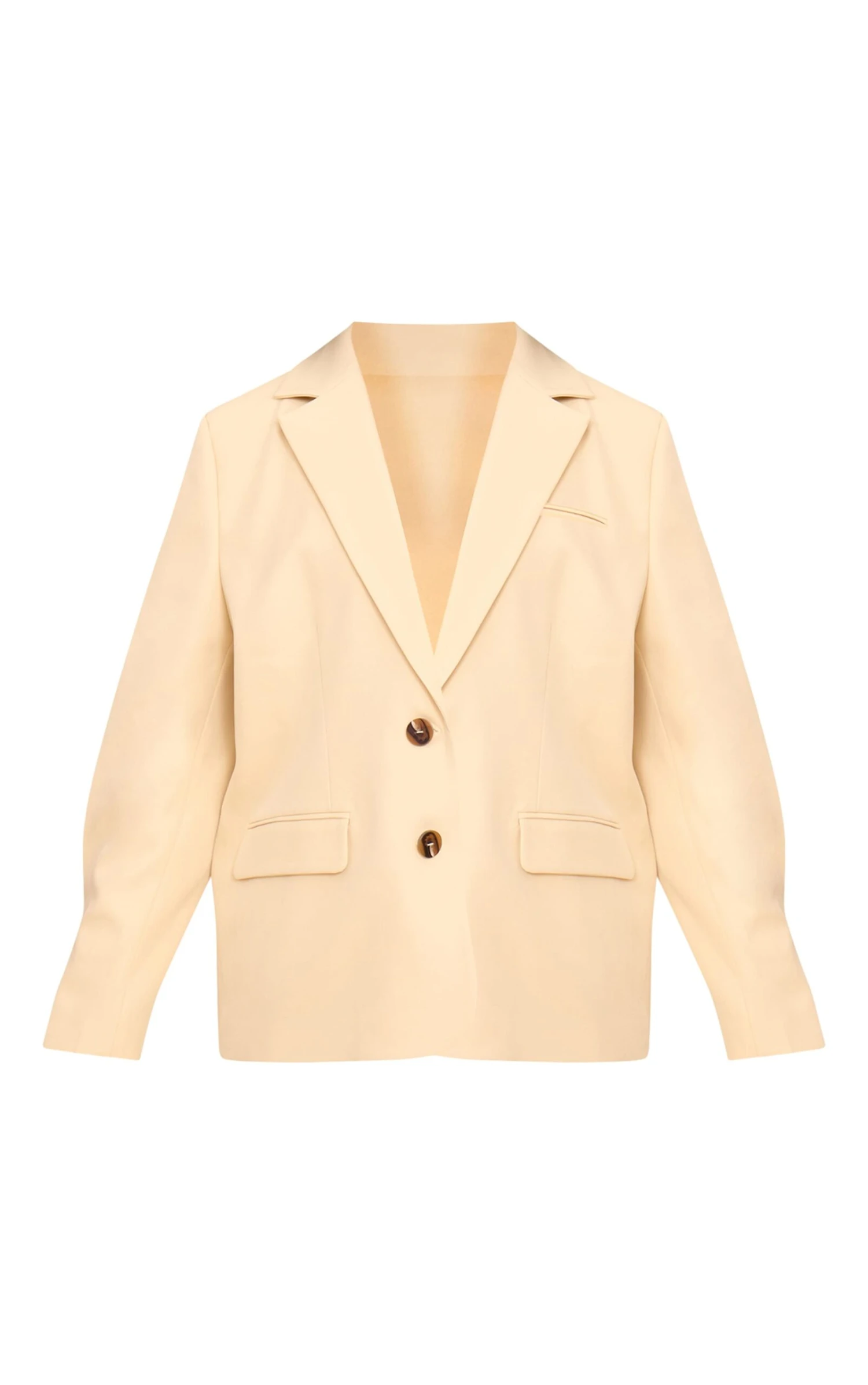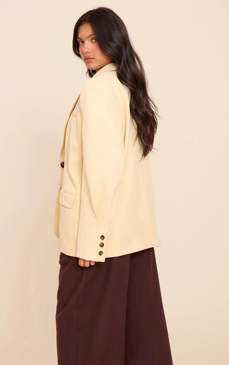 Layer up your look in this buttercream super boxy sleeve seam detail blazer. Made from cream material, this blazer has a collared neckline, pocket detailing and an oversized boxy fit. Add it to tailored pants and a cropped tee for a versatile look.