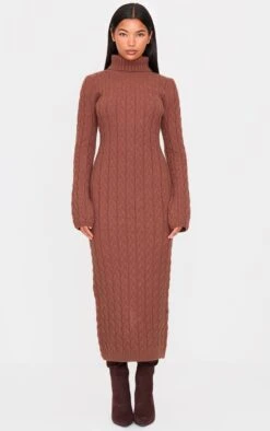 Consider this your cold-weather style directive. The cappuccino chunky cable knit maxi dress, rendered in a rich, neutral tone, offers an instant masterclass in textural dressing. The substantial cable knit provides warmth and visual depth, while the roll neck adds a considered, architectural element. Its maxi length lends a graceful silhouette, easily styled for day or evening. Add a touch of modern edge with a chain-link belt from our jewelry collection for a look that speaks volumes.