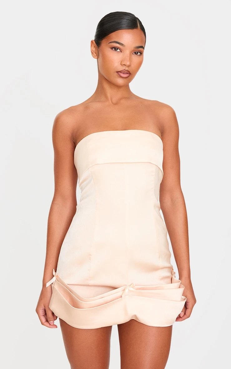 Consider this your new after-dark style investment: a champagne satin bodycon dress designed to command attention with an undercurrent of considered elegance. The lustrous satin subtly catches the light, while the strategically placed bow detail introduces a touch of modern architectural flair. A masterclass in minimalist dressing, the bodycon silhouette celebrates, not exposes. Elevate the look further with a sculptural clutch from our accessories collection and prepare for a seamless transition from cocktail hour to curated event.