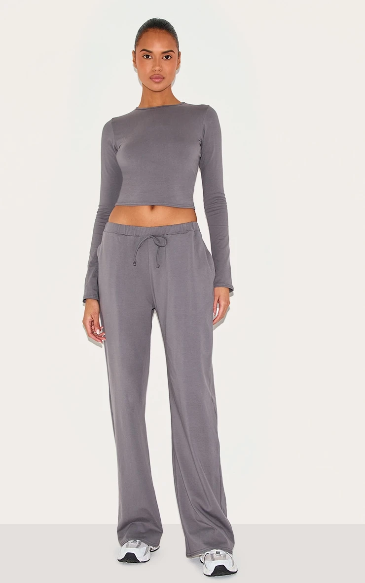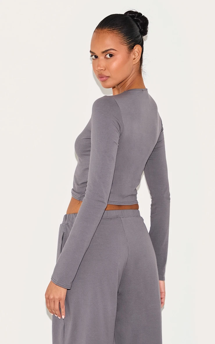Made from a charcoal cotton material with a long sleeve fit and a crew neck design. Team this charcoal cotton long sleeve crew neck top with the matching flared pants and a pair of comfy sneakers to finish off the look.