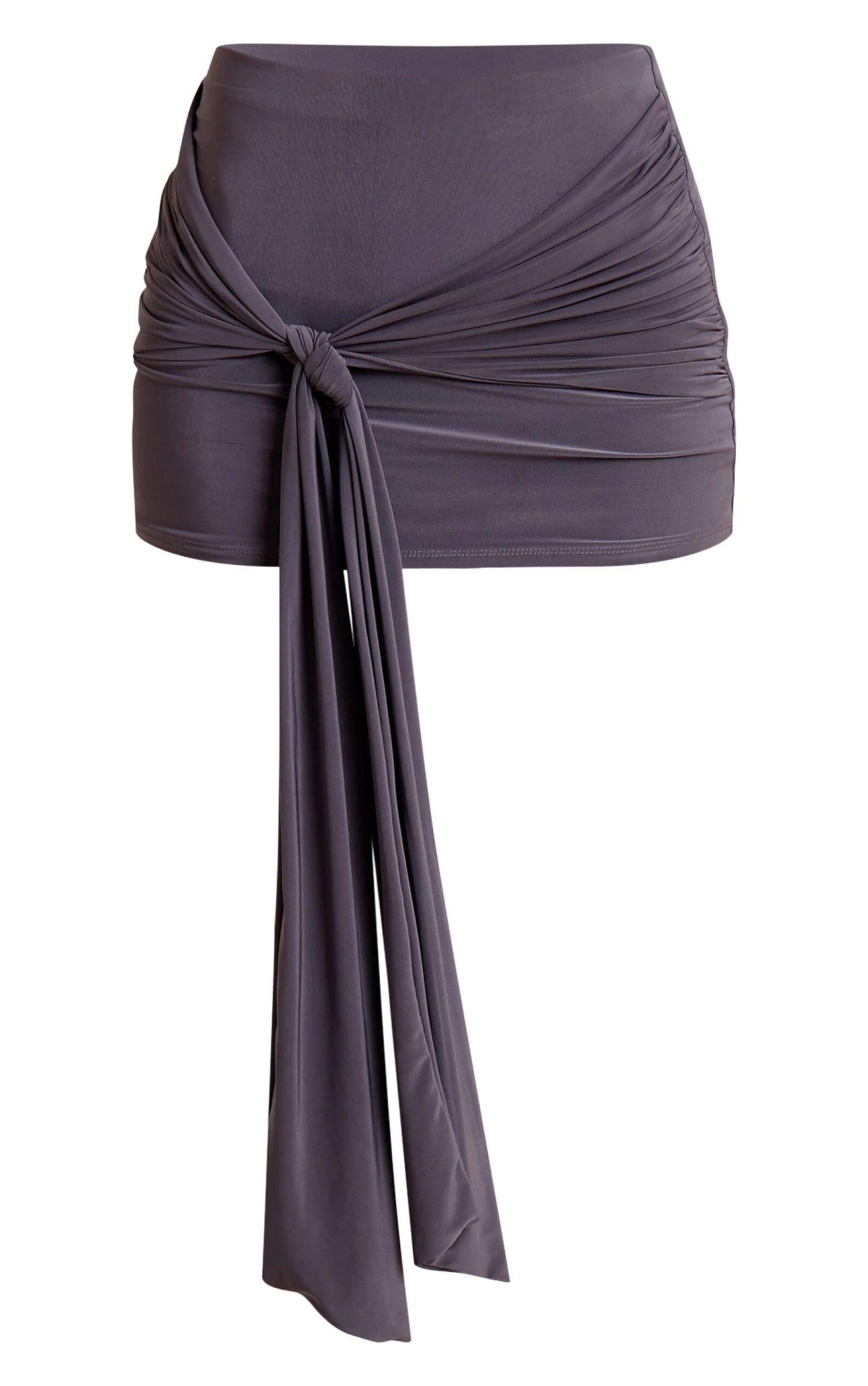 Add sleek drama with the charcoal slinky knot detail mini skirt. Featuring a body-hugging slinky fabric and chic knot detail, it’s cut to flatter every curve. Team with a cropped top and strappy heels for a night-out look.