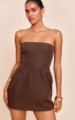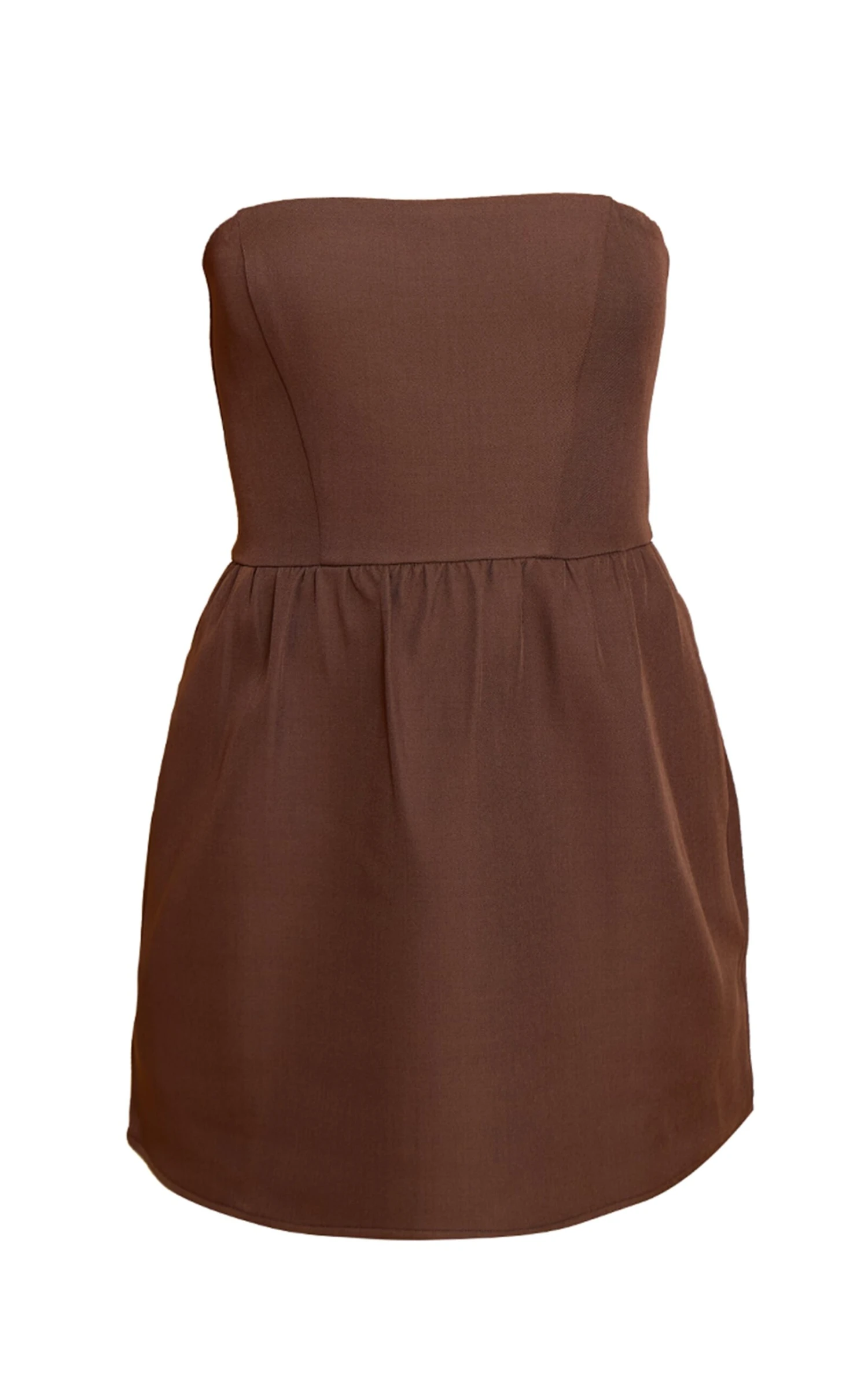 Keep it clean and structured with the charcoal woven bandeau pocket detail shift dress. Made from a charcoal woven material, this shift dress features a strapless bandeau neckline and utility-style pockets for a modern edge. Style with gold jewelry and slip-on heels for a sleek finish.
