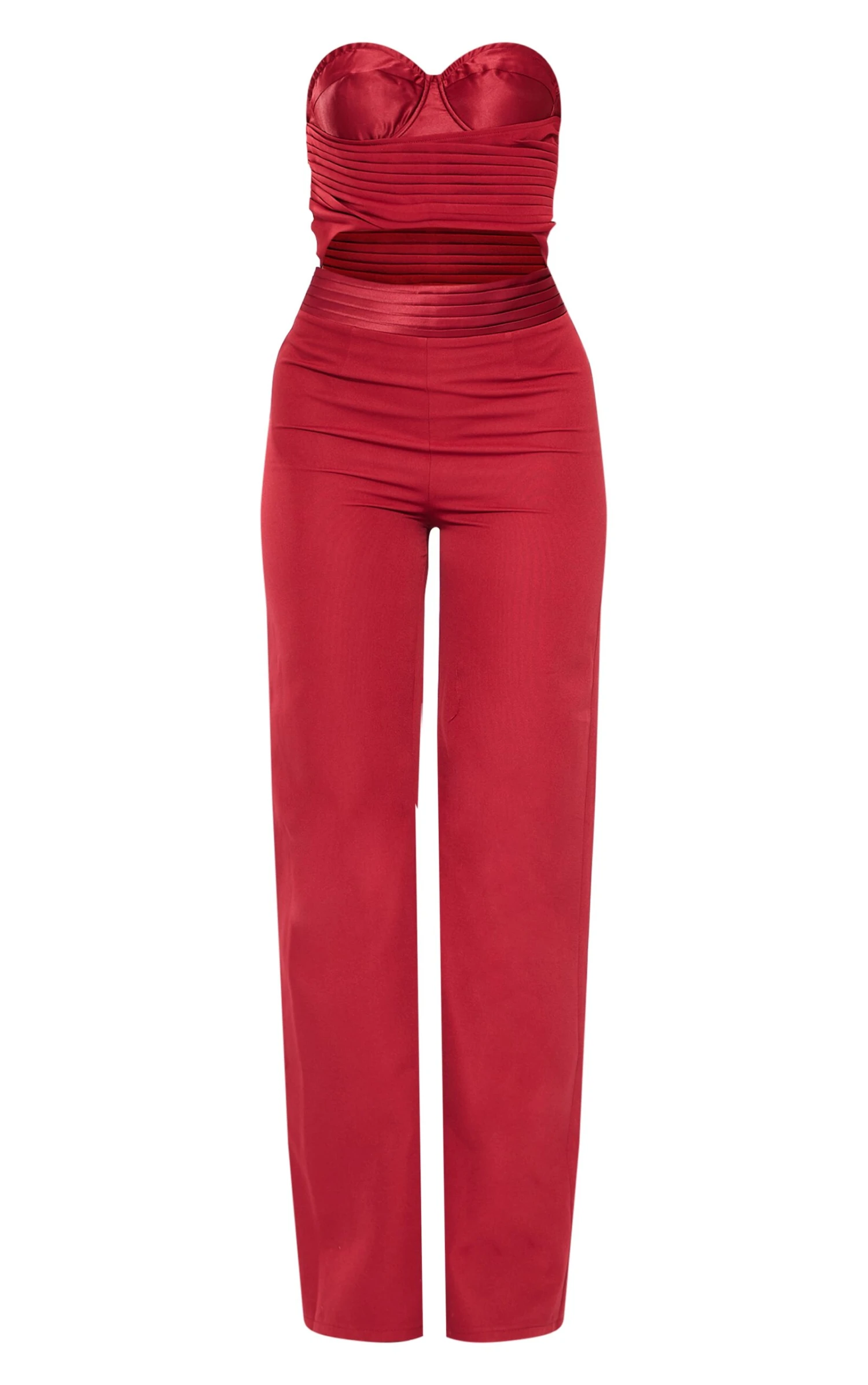 Set major trends with this cherry red ruched corset cut out jumpsuit. Brought to you in a cherry red material with ruched detailing, what more could you want? This corset jumpsuit has a cut out design that we are seriously obsessing over. Team with a pair of heels and your fave accessories for a look everyone will be talking about for all the right reasons.