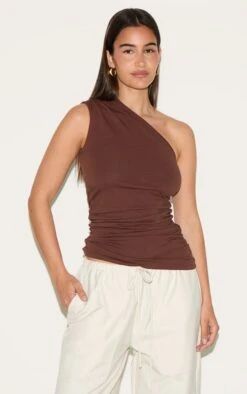 Say hello to your new staple with the chocolate asymmetric ruched sleeveless long top. Made from chocolate hue material, this top features an asymmetric one shoulder design and flattering ruching. For a stylish off-duty look, team this top with drawstring waist wide leg pants and chic flats.