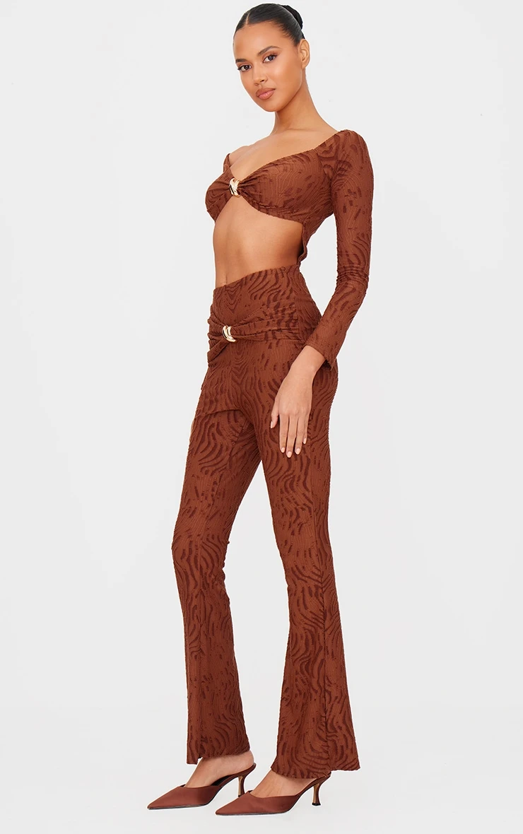 Consider this your after-dark uniform. The chocolate devoré jumpsuit offers a sophisticated alternative to the cocktail dress, imbuing textural depth with its subtle print. Note the considered cut-out detail that lends a contemporary edge to the silhouette, while the long sleeves temper the skin-revealing design. The flattering neckline enhances the décolletage. Complete the look with a sculptural clutch from our accessories collection for a considered evening statement.