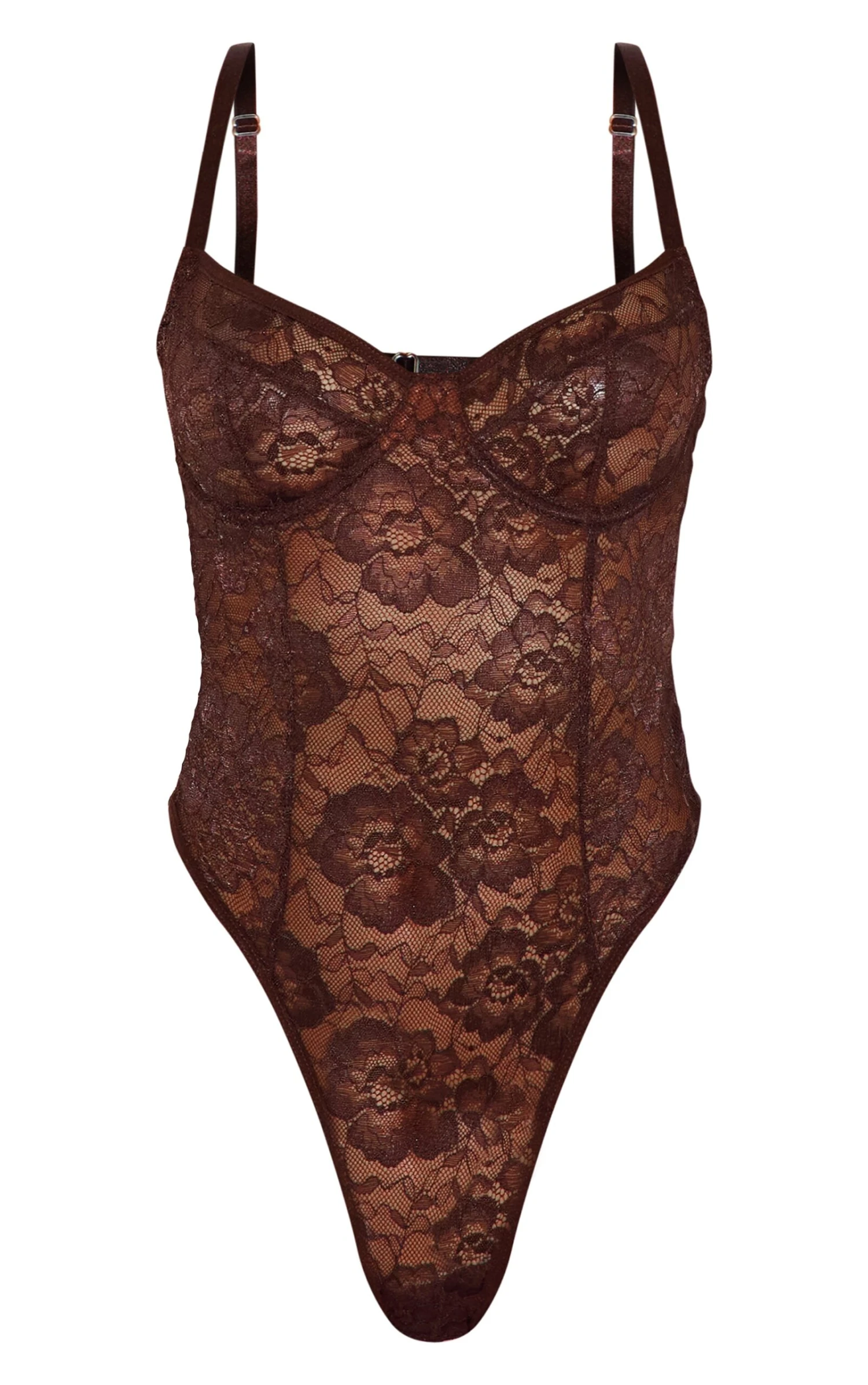 Consider this your foundation piece: a delicate chocolate lace bodysuit meticulously crafted with underwired support for a subtly sculpted silhouette. The intricate lace detailing elevates the rich, earthy tone, lending a touch of refined allure. Style it beneath tailored pants or a midi skirt for a confident, layered look, and complete the ensemble with a delicate gold chain from our jewelry collection.