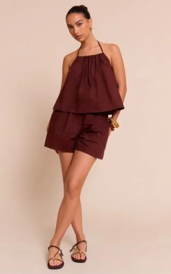 Keep it casual with these chocolate poplin floaty shorts. Crafted from a chocolate material with a poplin design and a relaxed, floaty fit. Team these shorts with the matching top and a pair of ballet flats to take your outfit of the day to the next level.