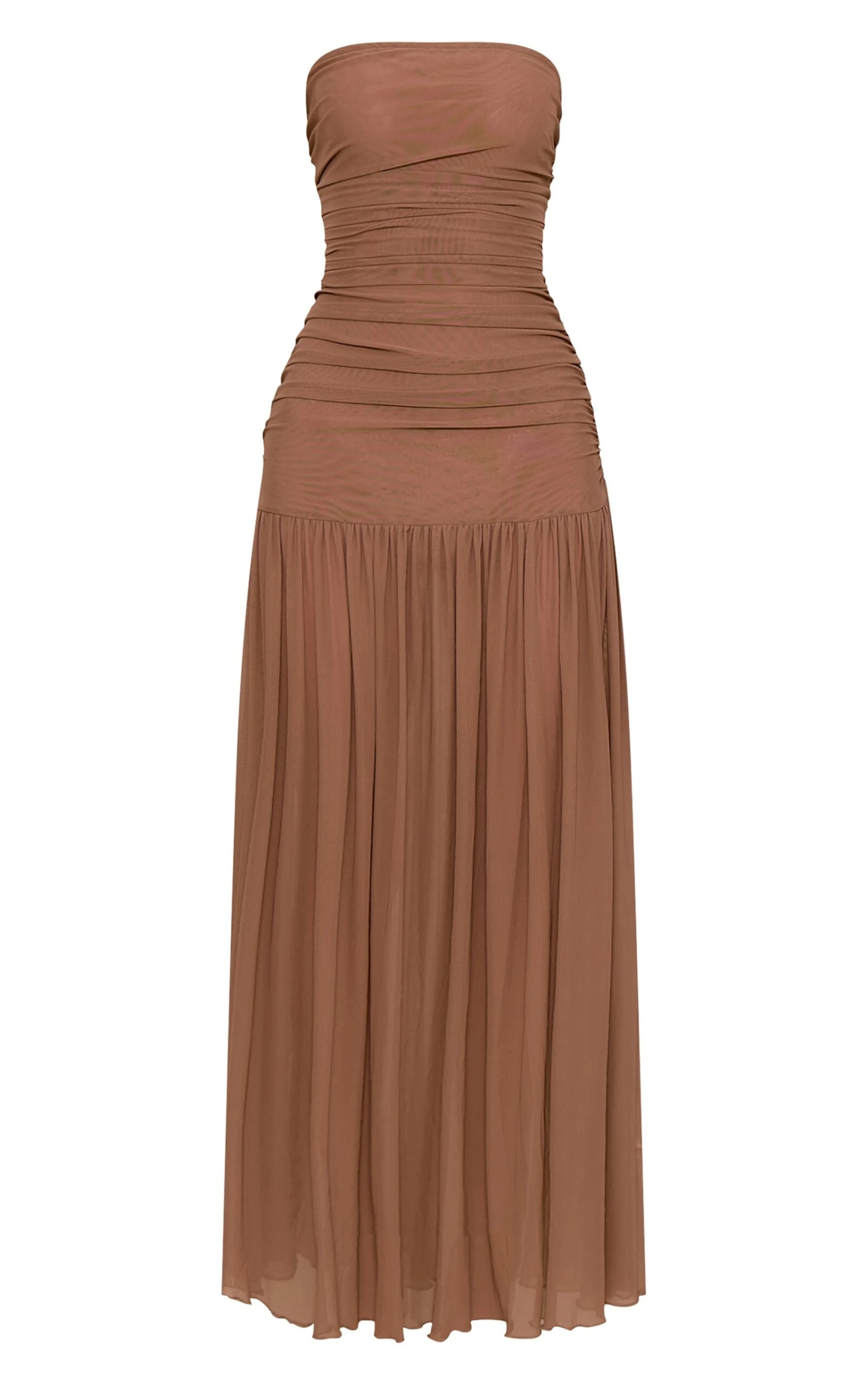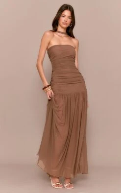 Look bold in this chocolate ruched scarf dropped waist maxi dress. Crafted from chocolate material with ruched scarf detailing, dropped waist design and a maxi length for a chic look. Team this dress with a pair of heels and gold accessories to turn heads.