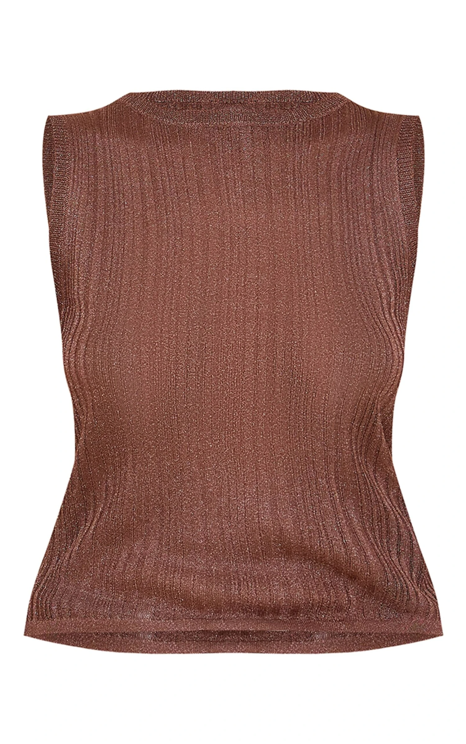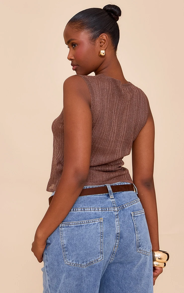 Say hello to your new season staple with this chocolate sheer knit boat neck top. Tailored from a deep brown sheer fabric, this top has a chic boat neckline and a sleeveless fit. Make an off-duty day statement by teaming it with wide leg jeans, a structural bag, sunglasses and understated jewelry.