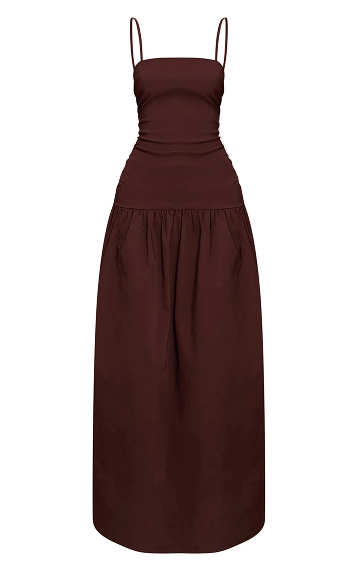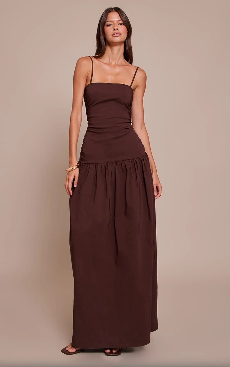 Exude elegance in the chocolate stretch woven strappy ruched maxi dress. Made from a chocolate stretch woven material, it features thin straps, ruched accents, and a maxi length for a flattering finish. Pair with a clutch bag and a pair of kitten heels for an evening event.