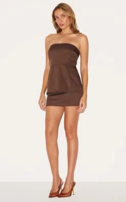 Consider this your new essential for sharp, considered dressing. This chocolate woven mini skirt offers a masterclass in contemporary tailoring. The mid-rise silhouette sits perfectly, while the micro mini length makes it ideal for showcasing statement footwear. Crafted in a subtly textured woven fabric, its clean lines lend themselves to endless styling possibilities. Team with a neutral knit and knee-high boots for a confident daytime look, or elevate your evening ensemble by pairing it with an oversized blazer and a delicate chain from our jewelry collection.