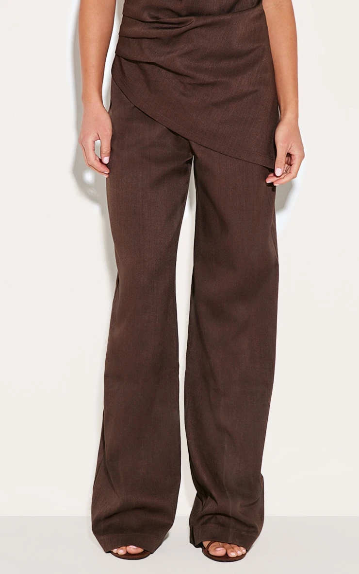 Brought to you in a chocolate woven material with a tailored design and a wide leg fit. Team these chocolate tailored woven wide leg pants with the matching top and a pair of heels to elevate your look instantly.