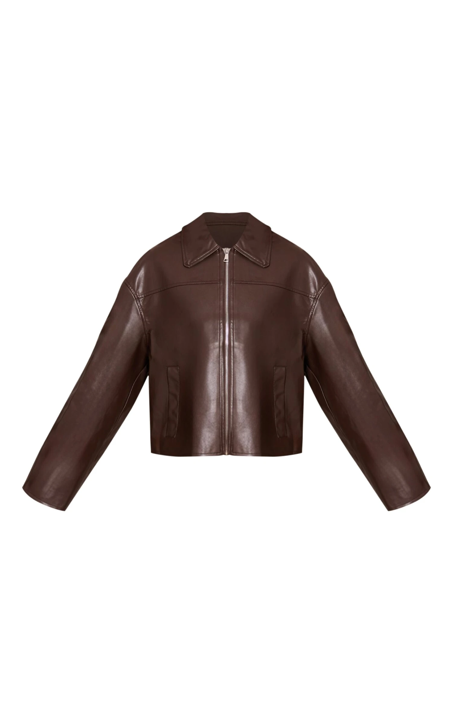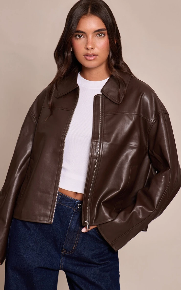 Stay sleek in the chocolate zip through PU jacket. Made from a chocolate PU material, it features a zip fastening, tailored cut, and long sleeves for modern layering. Pair with kitten a pair of loafers, jeans and gold earrings for chic styling.