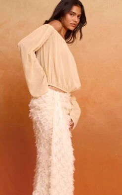 Make a statement in this cream distressed woven dop waist maxi skirt. Brought to you in a cream woven material with a distressed design and a dip waist detailing giving you a flattering fit like no other. Team this maxi skirt with a crop top and a pair of heels and some gold accessories for a chic finish like no other.