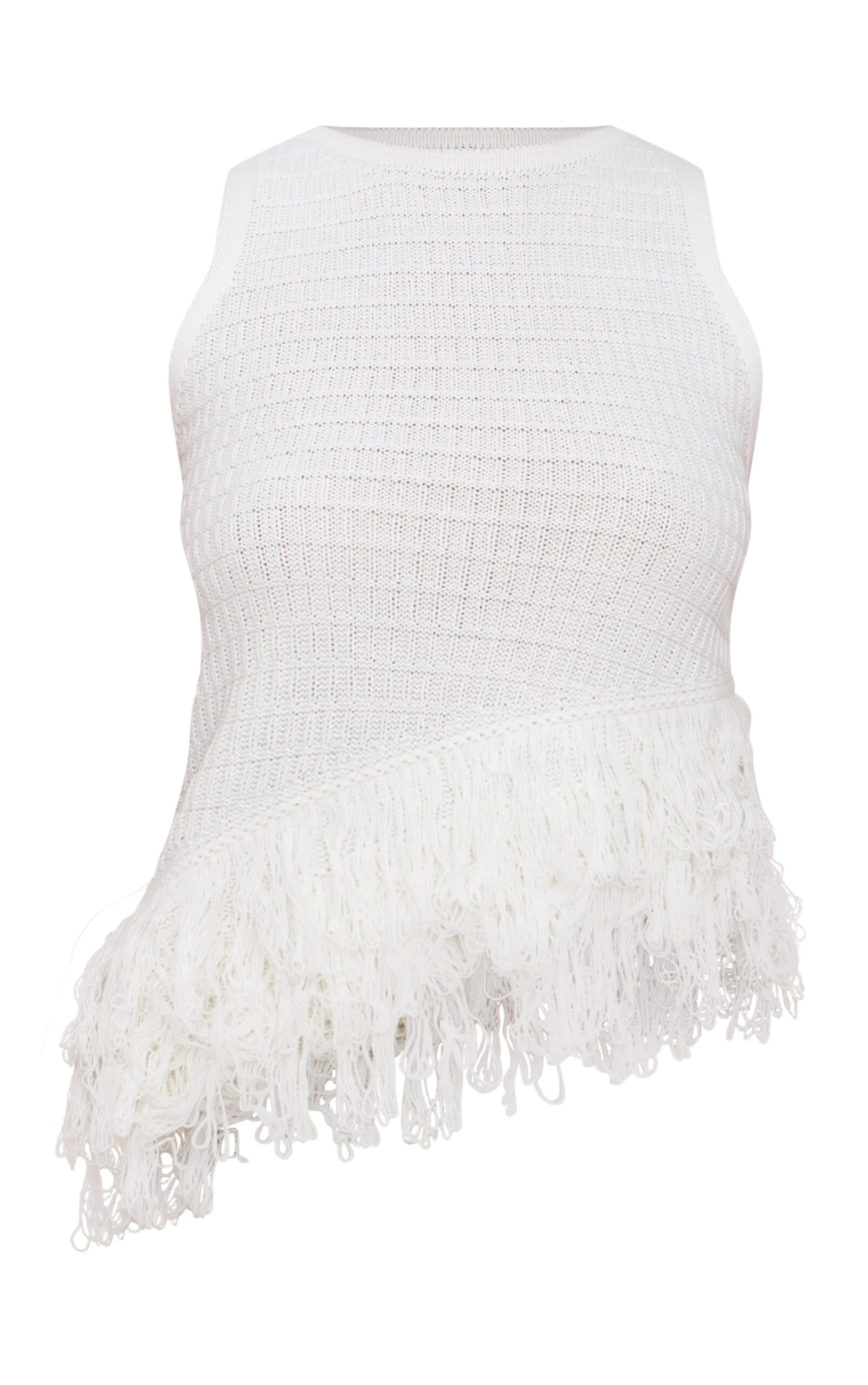 Find your edge in artful texture for evening dressing. The cream loop knit Vest brings a fresh take on knitwear with its clean sleeveless cut, simple crew neckline, and distinctive asymmetrical loop fringe hem that adds dynamic movement. This piece is perfect styled with the matching two piece set skirt for a complete moment, or pair it with sharp black tailored pants and heels for a confident finish ready for wherever the night takes you.