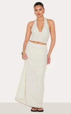The cream striped maxi skirt is the piece you need this season. Crafted from cream material with a delicate stripe pattern, this skirt has a comfortable elasticated waist and a chic maxi length fit. Pair this piece with the matching top, understated flat sandals and your favorite minimalistic jewelry.