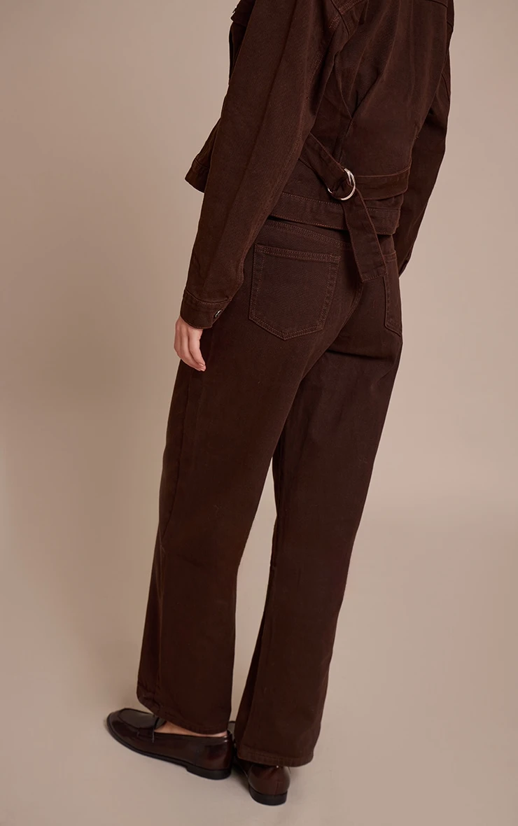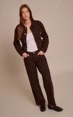 Keep it sleek with the dark chocolate dip front straight leg jeans. Made from a dark chocolate denim material, they feature a dip front waistline, straight leg cut, and a flattering fit. Pair with the matching jacket and gold earrings for an effortlessly chic finish.