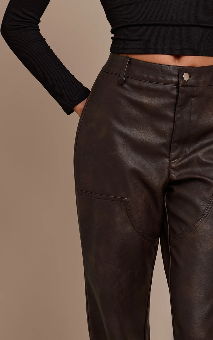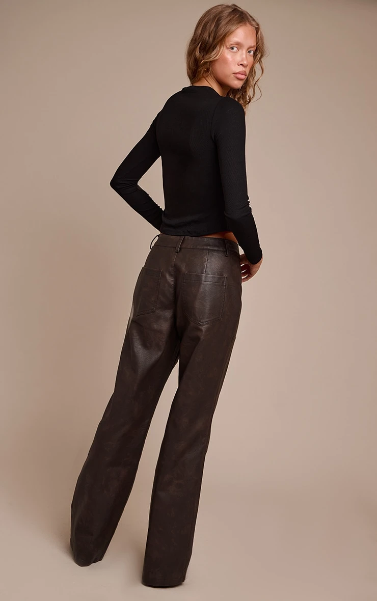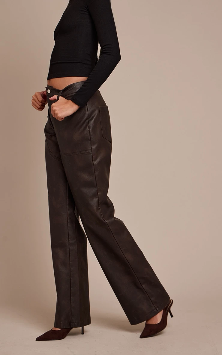 Step out with a knowing confidence that commands the night. The dark chocolate faux leather seam detail pants offer a distinct silhouette, cut to an elongating straight-leg profile with a flattering high waist and distinctive seam detailing for a tailored, modern finish. The deep dark chocolate hue grounds this statement design, complete with a clean front value and zip fastening. Pair these pants with a sleek long-sleeved top or a crisp tailored blouse, elevating the look further with sharp strappy heels and understated gold stud earrings for an intentional ensemble that truly owns the evening.