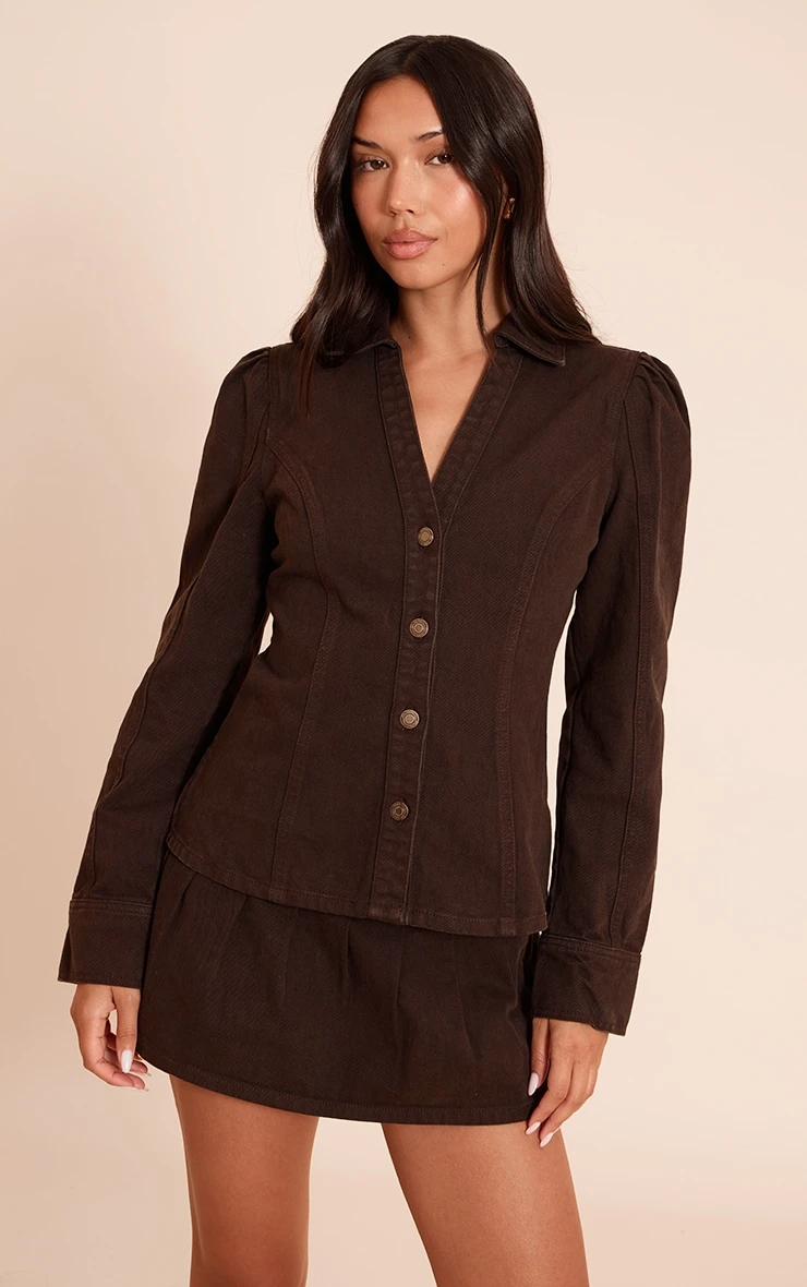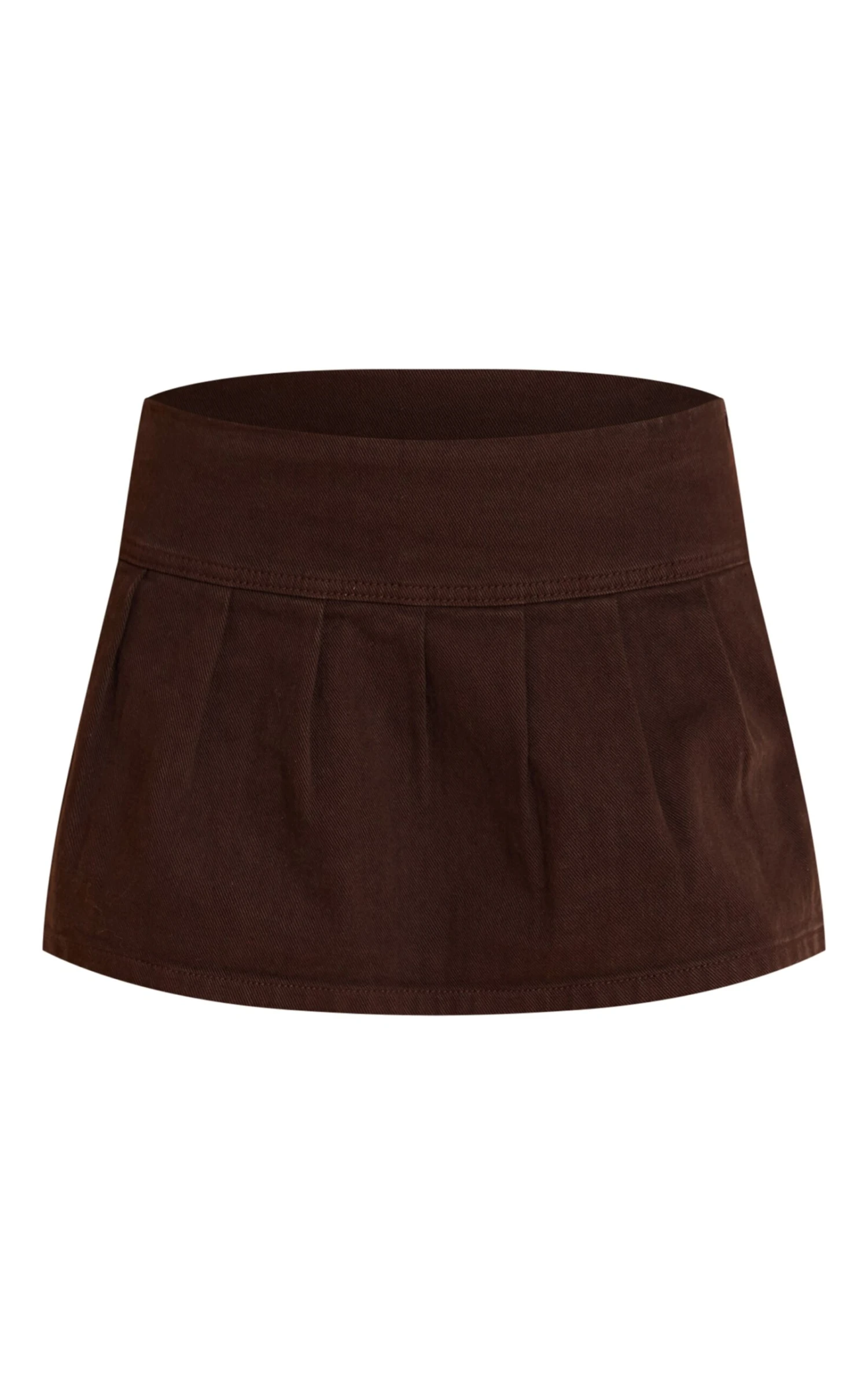 Stay playful in the dark chocolate floaty pleated denim mini skirt. Made from a dark chocolate denim material, it features pleated detailing, a floaty silhouette, and a mini length. Style with slip on mule heels or ballet flats and a clutch bag for timeless appeal.